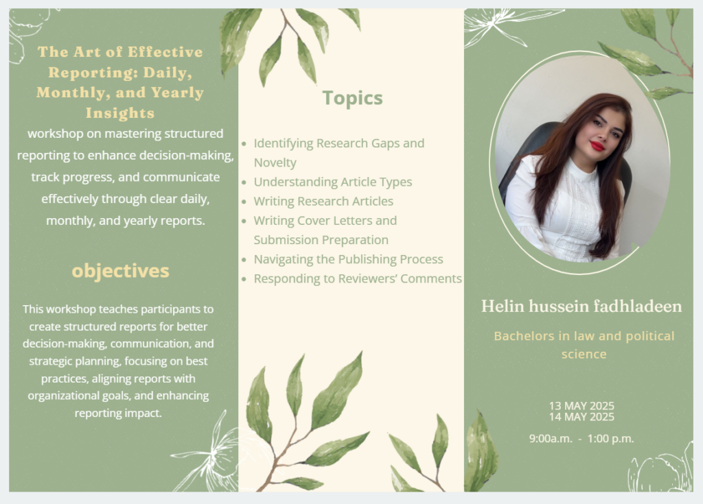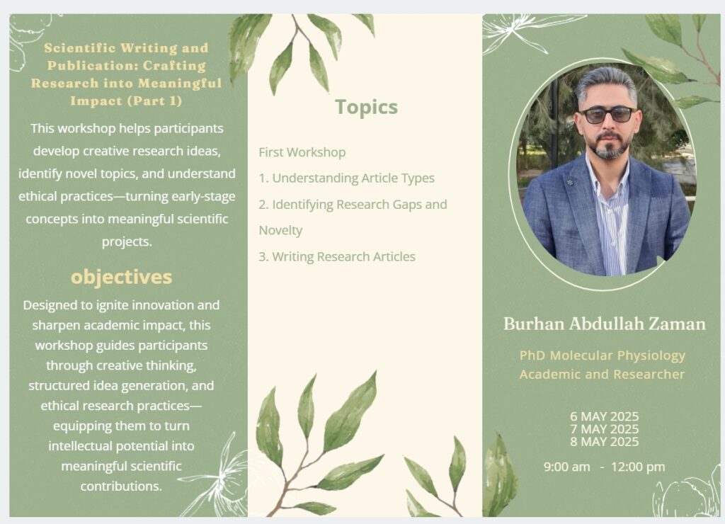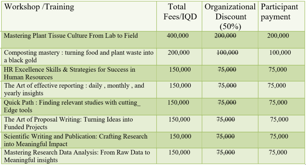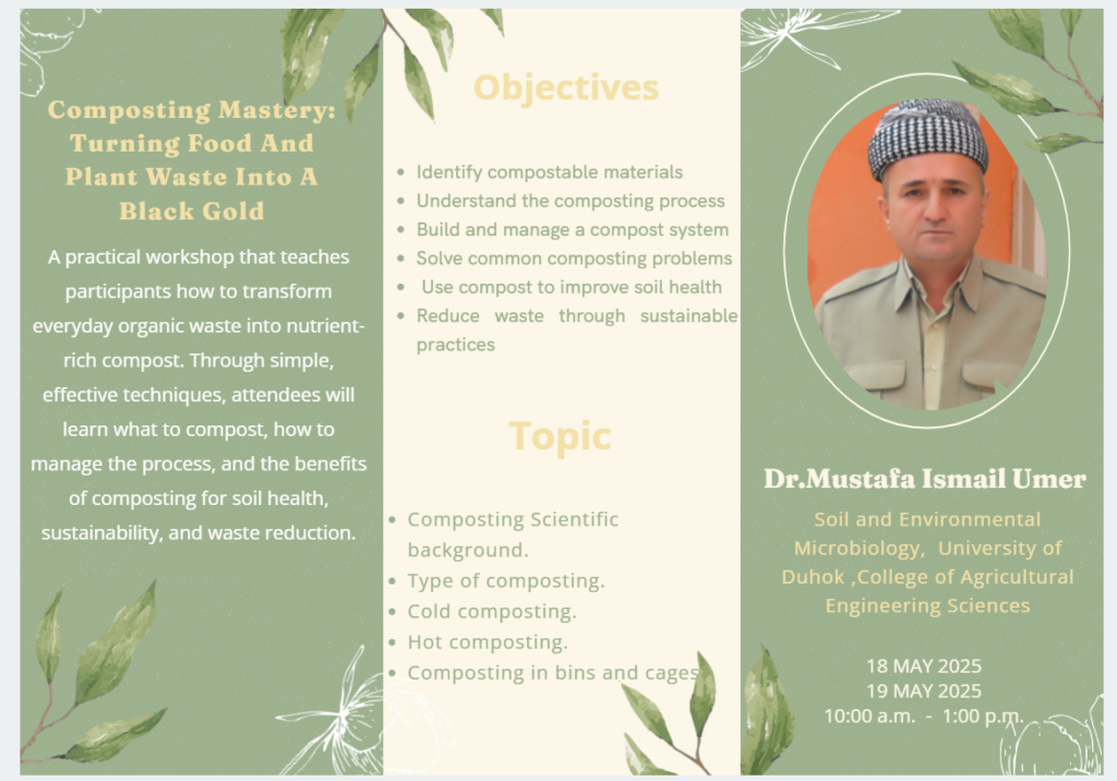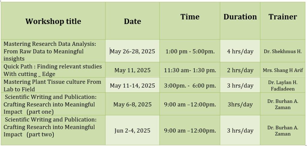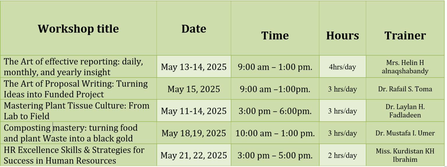 • Venue: All workshops will be held at Dr. Laylan Agro Project, Seje Road – Sumel- Dohuk, Kurdistan Region– Iraq.
