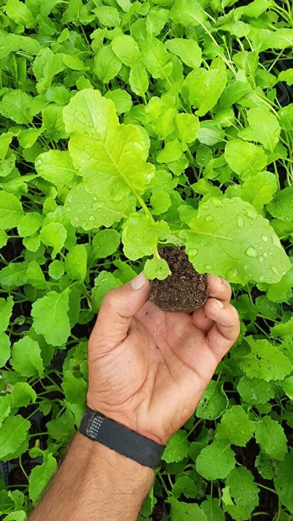 Raising high-quality vegetable transplants using certified seeds with strong qualitative and quantitative traits.